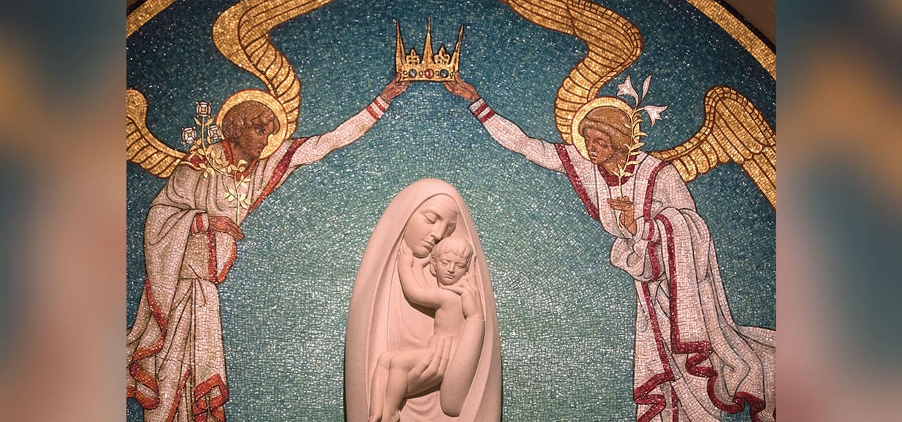 Imagen destacada:Un mosaico de María y el Niño Jesús con ángeles en la Basílica del Santuario Nacional de la Inmaculada Concepción en Washington, D.C. (CNS/Bob Roller/EE.UU.)