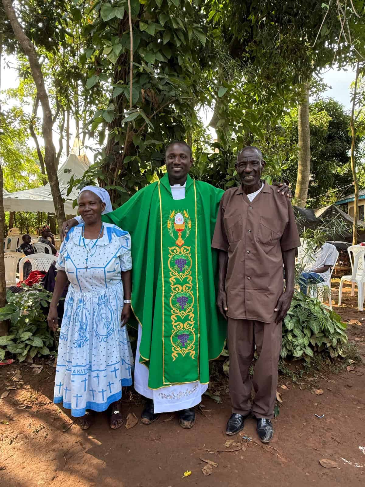 Para representar a sus padres, el Padre Okok escogió a Florence y Jospeter Mugambi, un matrimonio keniano que conoció a Okok a través de su comunidad eclesial de base en Chicago, donde él sirvió cuando era seminarista.